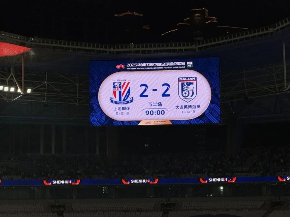 北京时间2025.10.26晚19:35。大连英博海发足球俱乐部做客上海体育场客场2:2战平上海申花!